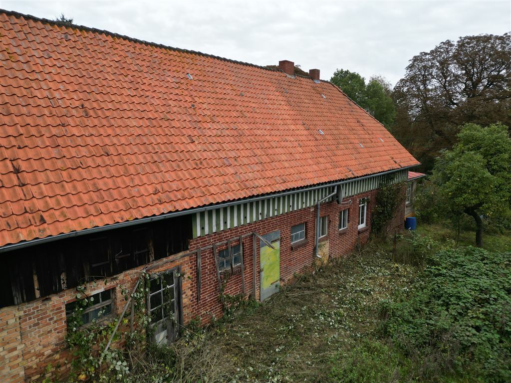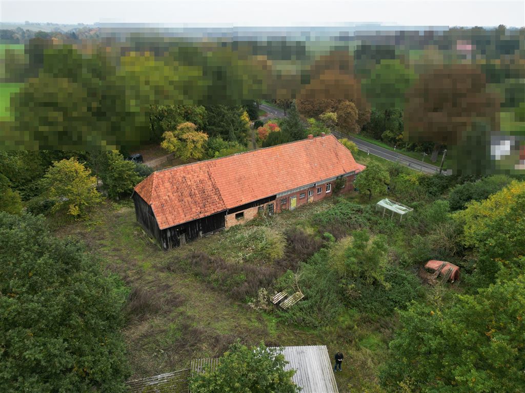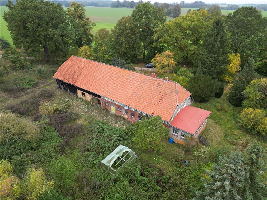 Beeidruckende 18.781 m² Grundstück bieten Ihnen Raum zur Verwirklichung Ihrer Vorhaben und Träume. Bei dem wunderschönen Bauerhaus aus der Siedlungszeit handelt es sich um ein typisch dreigeteiltes Objekt, wie man es häufig in der Region antrifft. Im vorderen Haus befindet sich der Wohnbereich auf 2 Etagen. Noch vor der Wende wurde ein Anbau angebracht, um den Wohnraum zu vergrößern. Daran anschließend liegt der ehemalige Stall, gefolgt von einer großen Scheune. Insgesamt hat das Objekt eine Grundfläche von ca. 300 m². Das große Grundstück ist unterteilt in Vorgarten mit Ziergehölzen, einen Wirtschaftshof mit Carports und Unterstellmöglichkeiten hinter dem Haus, Obstgarten mit ca. 60 Obstbäumen auf ca. 4.000 m² und Acker- und Grünland mit knapp 1 ha.