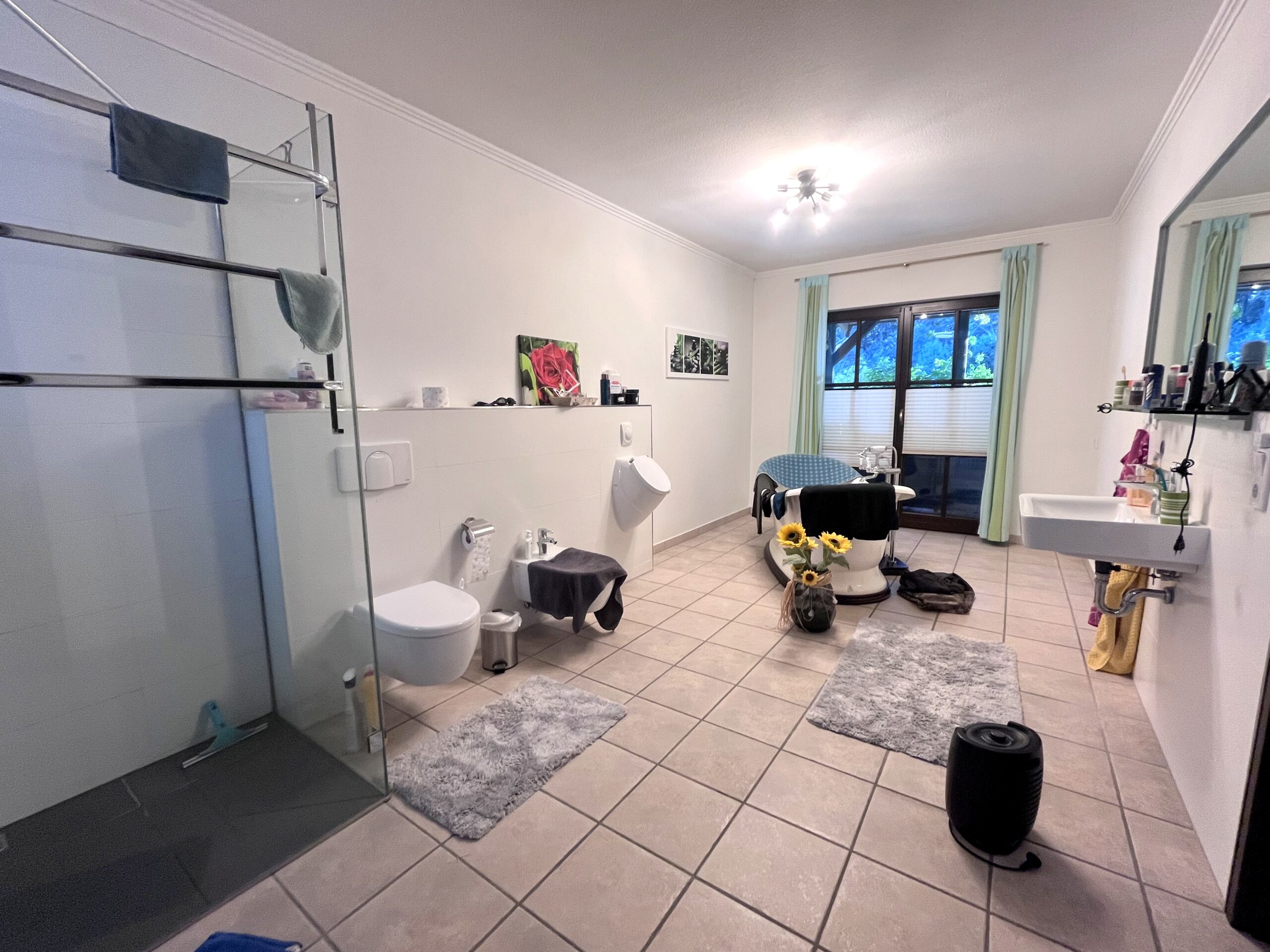 Im Erdgeschoss befinden sich außerdem ein geräumiger Flur, ein weiteres Zimmer – ideal als Arbeits- oder Gästezimmer – sowie ein luxuriöses Badezimmer mit freistehender Badewanne und ebenerdiger Dusche. Direkt daran angeschlossen: ein praktischer Hauswirtschaftsraum.