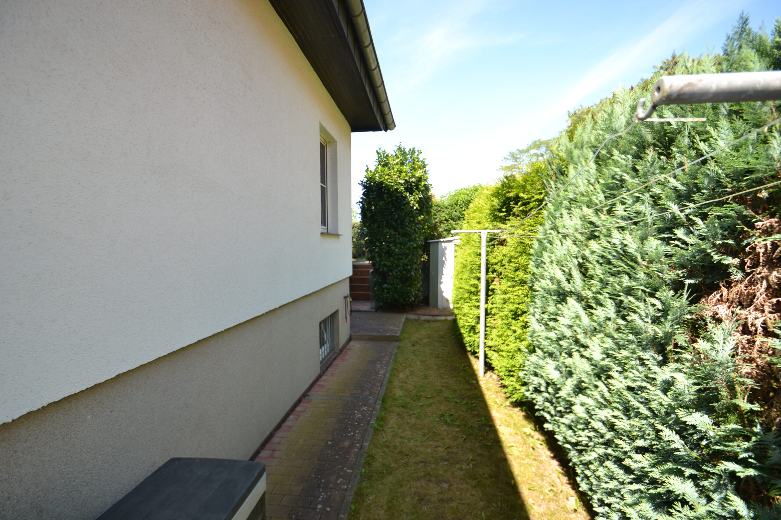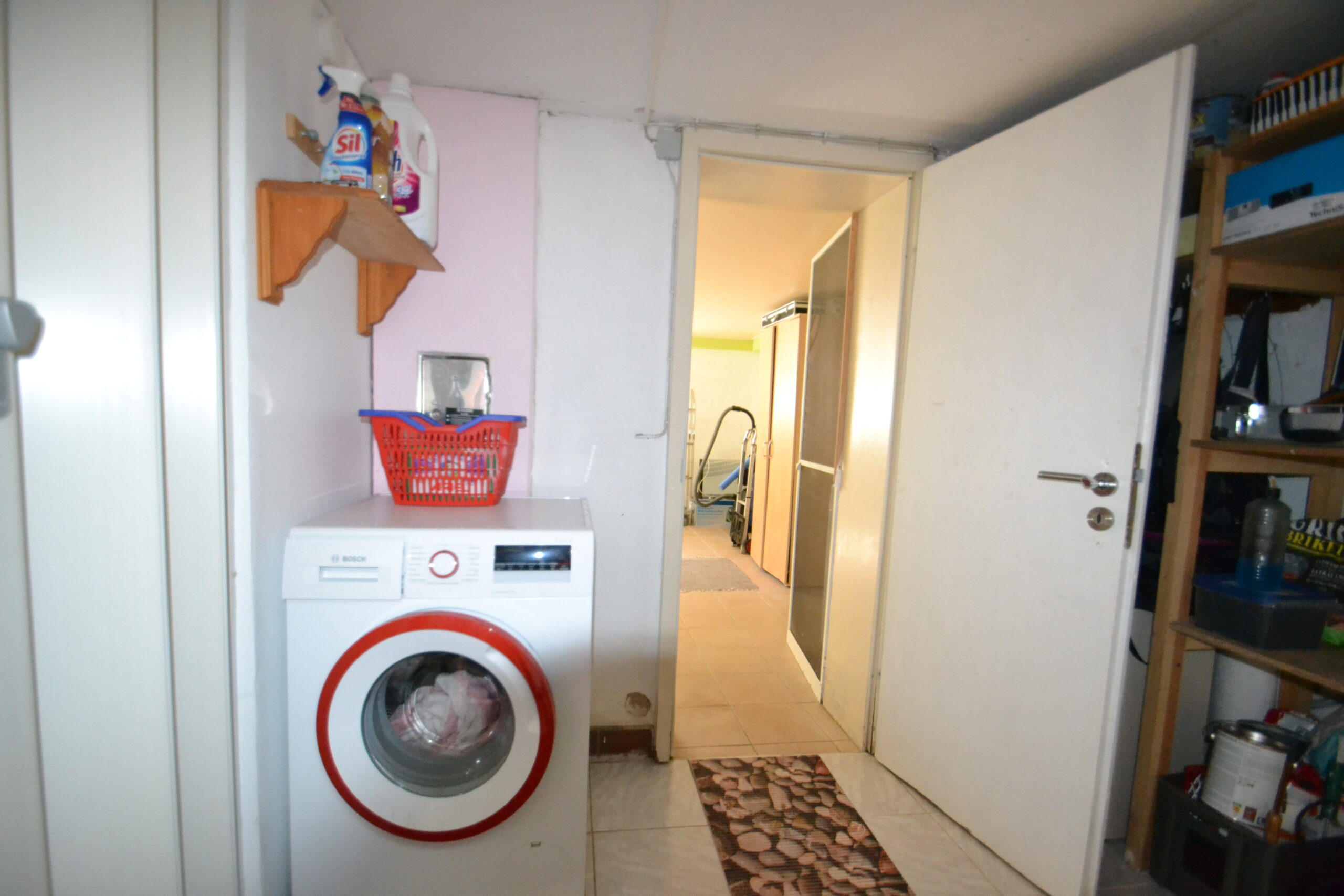 Im Wohnbereich finden sich ein behagliches Wohnzimmer sowie ein Schlafzimmer und ein Kinderzimmer. Das Badezimmer mit Dusche verfügt über eine zeitgemäße Ausstattung. Die funktionale Einbauküche ist Bestandteil des Angebotes. Dank der praktischen Gestaltung lässt sich auch der Kellerbereich flexibel als zusätzlicher Wohnraum und Abstellraum nutzen.