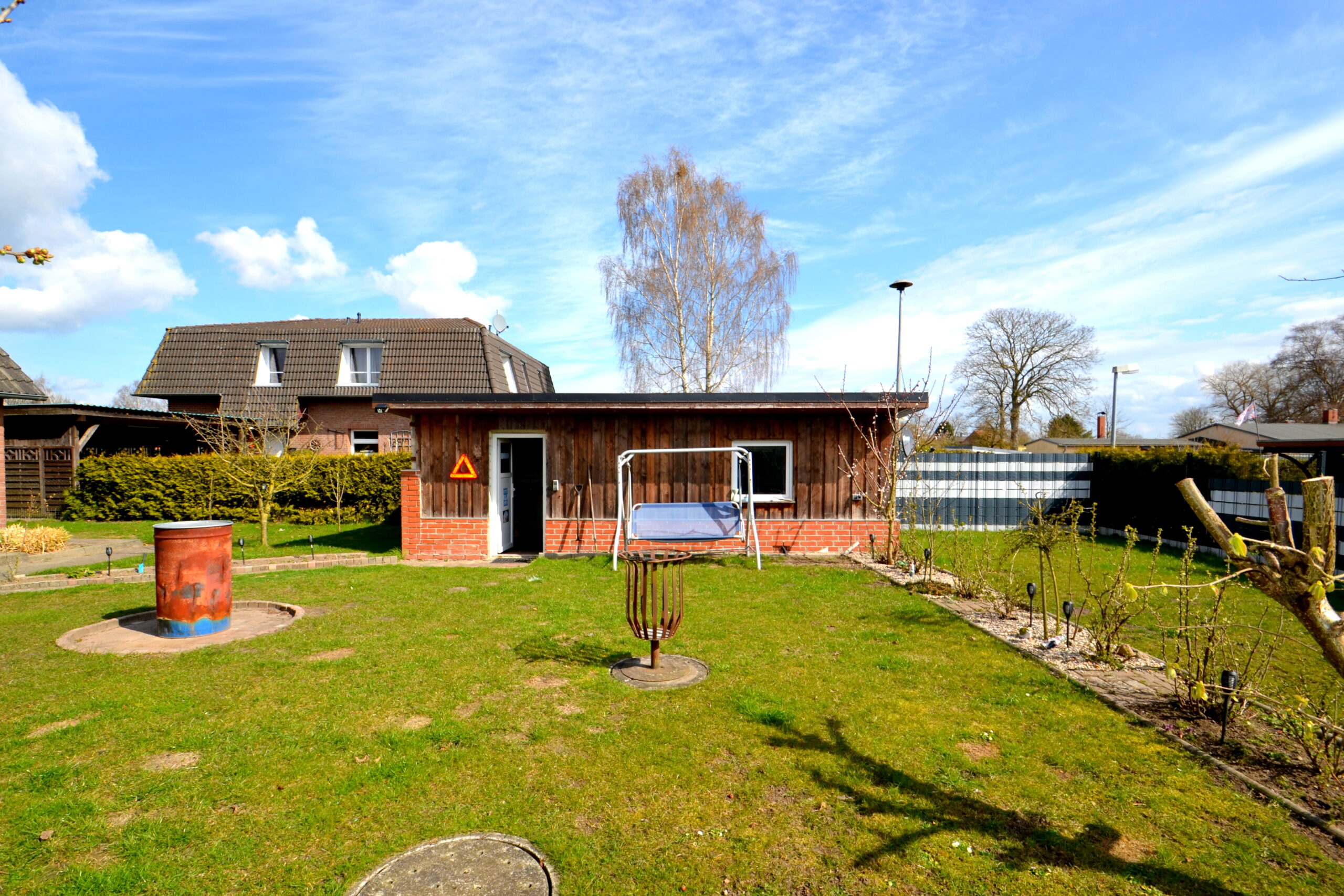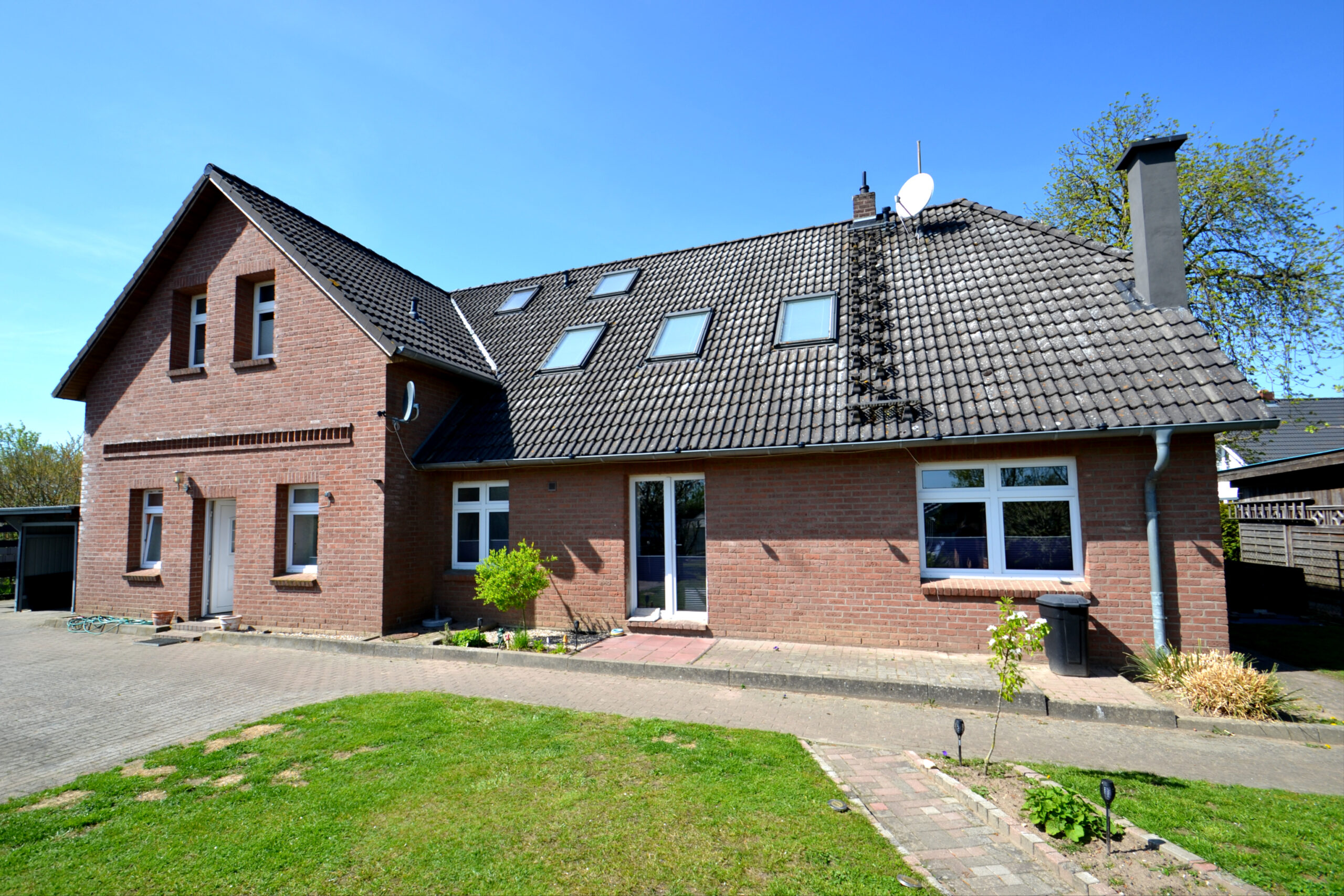 Auf dem 998 m² großen Grundstück präsentiert sich das Anwesen in einer gepflegten, pflegeleichten Gartengestaltung. Die neue Klinkerfassade wurde im Rahmen der ersten Sanierung inklusive Dämmung vollständig erneuert, sodass energetische Ansprüche zeitgemäß erfüllt werden. Die Heiztechnik erfolgt über ein Öl-Brennwertgerät aus dem Jahr 2020, ergänzt durch einen gemütlichen Kaminofen, der für behagliche Wärme sorgt und zusätzlich Heizeffizienz bietet.