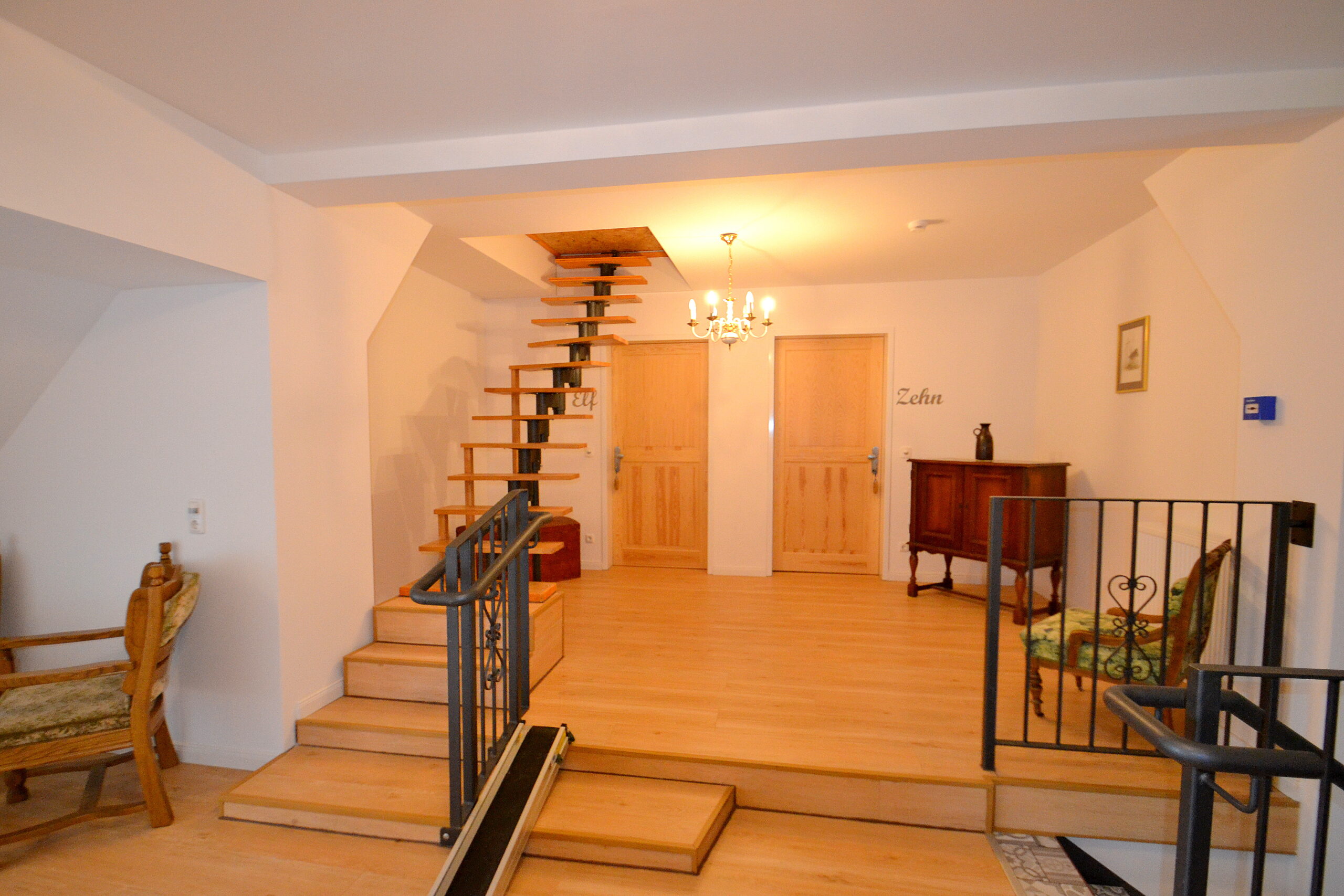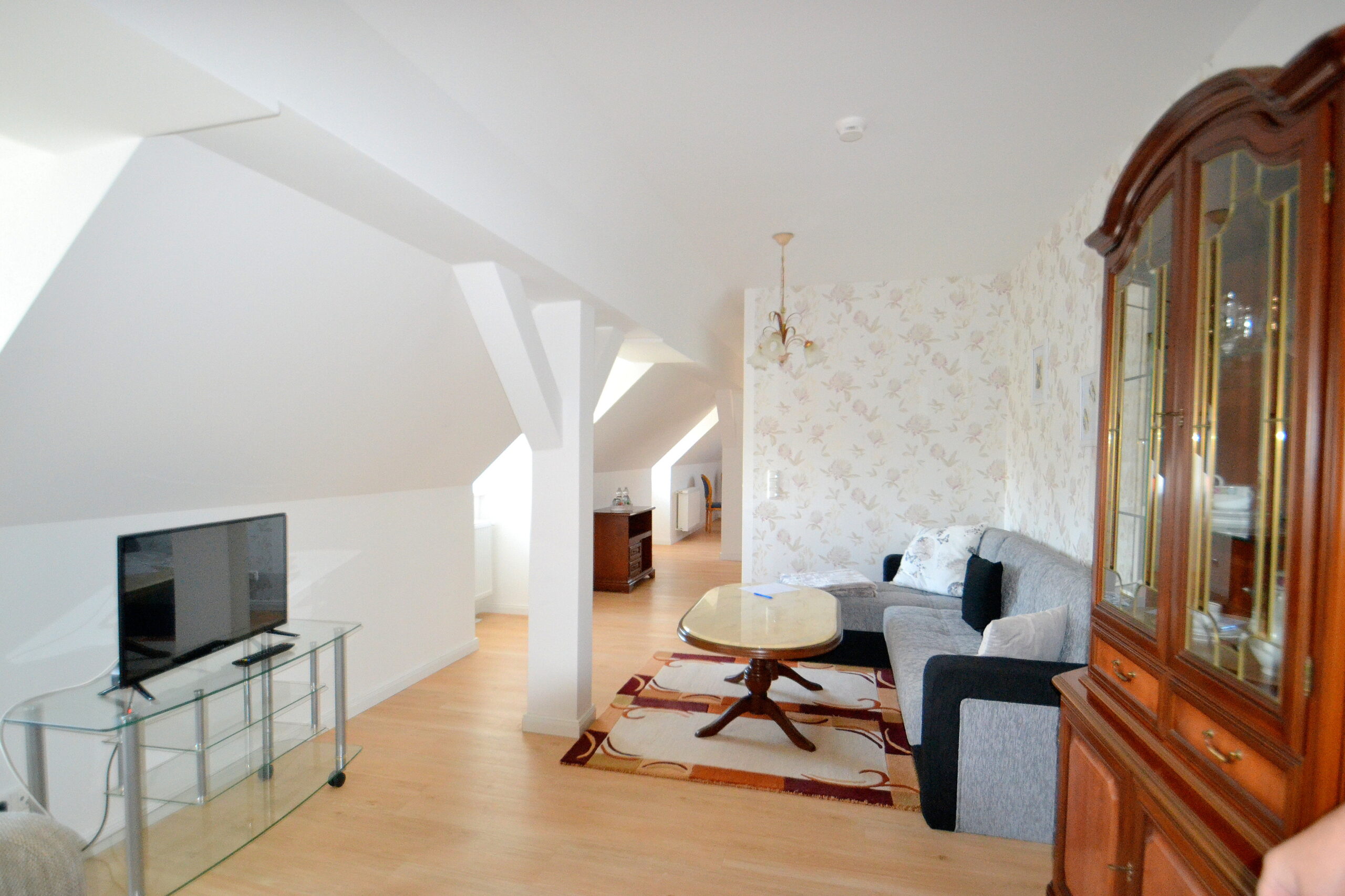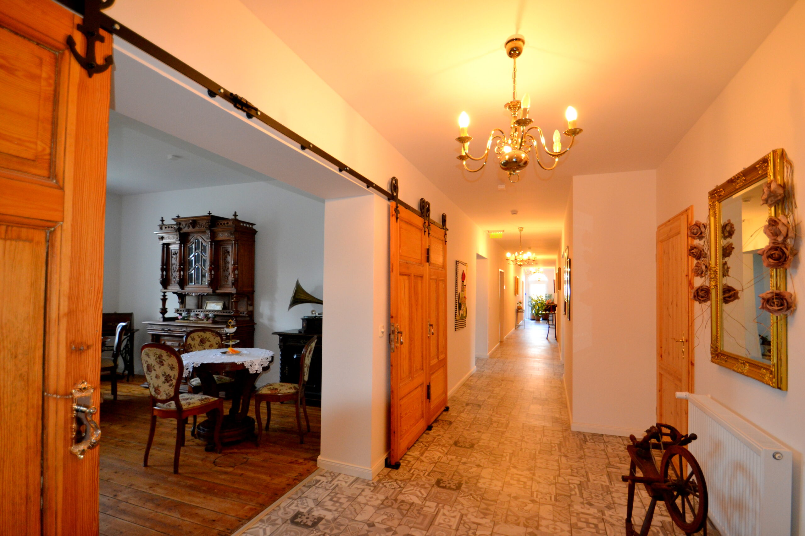 Besonders charakteristisch ist die harmonische Verbindung von historischem Charme und modernem Komfort. Die Ausstattung umfasst unter anderem einen Fahrstuhl, der alle Ebenen barrierfrei erreichbar macht, einen gut eingerichteten Saunabereich zur Entspannung der Gäste, sowie eine hochwertige Haustechnik, die sämtliche Betriebs und Sicherheitsanforderungen erfüllt. Eine voll ausgestattete Gemeinschaftsküche und großzügige Gemeinschaftsbereiche runden das Interieur ab und ermöglichen eine effiziente Bewirtung sowie gesellige Begegnungen der Gäste.