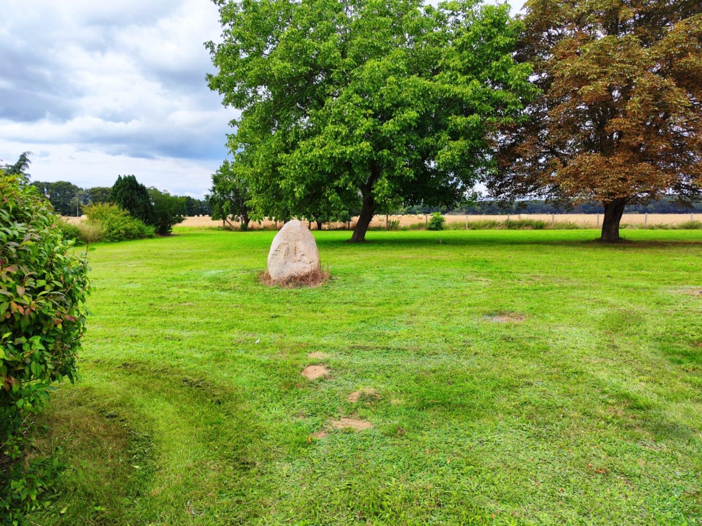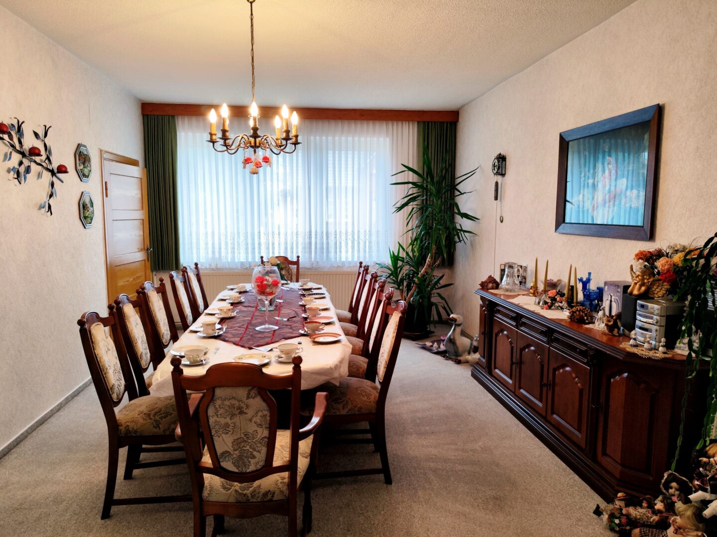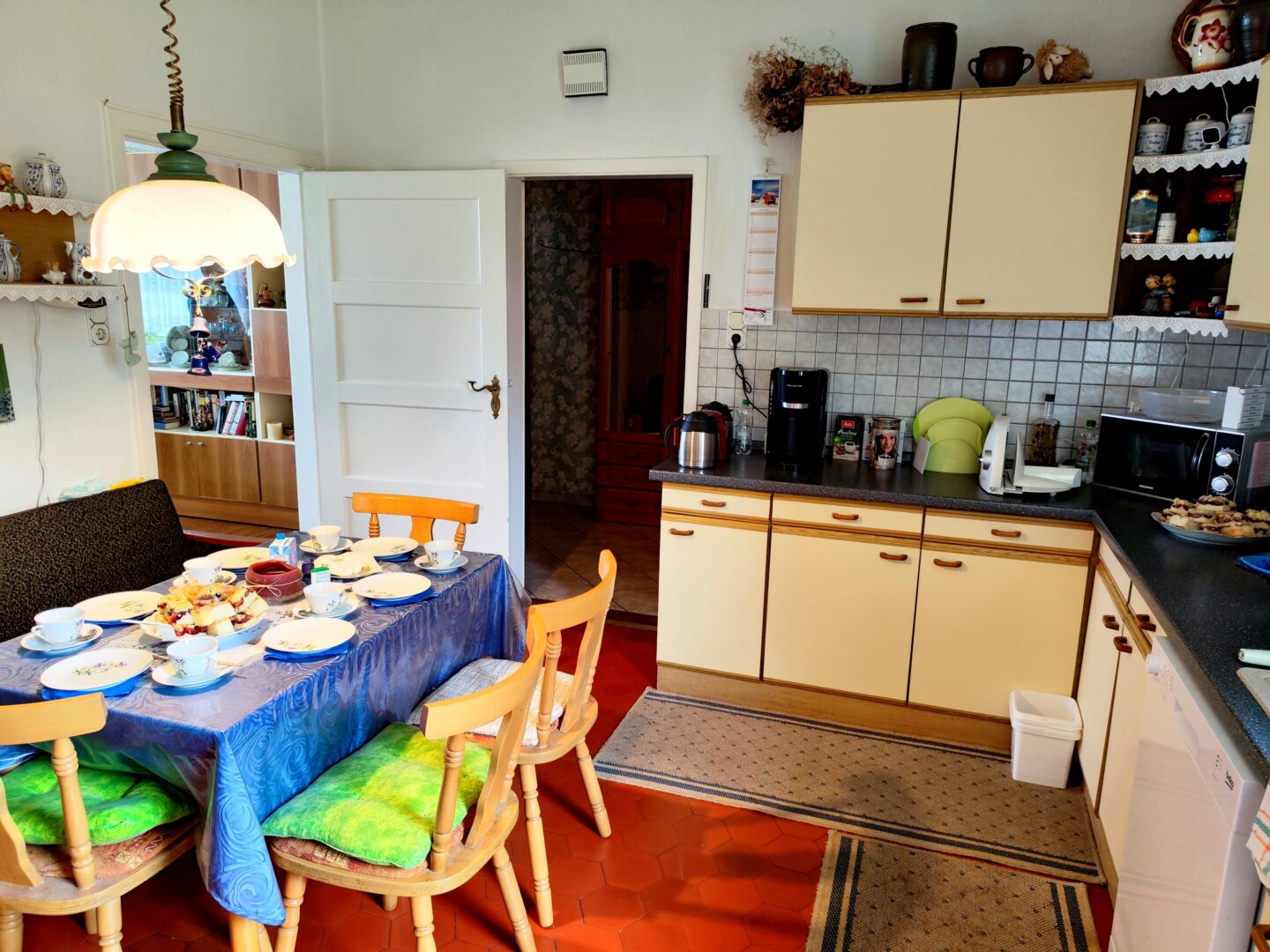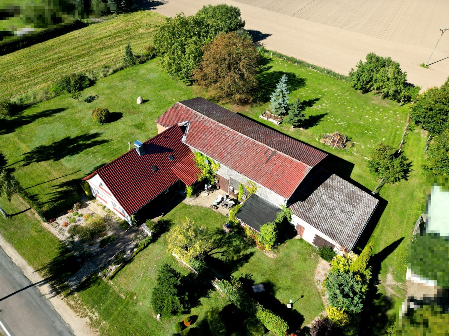 Das teilunterkellerte Haus wird durch eine Ölheizung beheizt, die sich im Keller befindet. Neben dem Wohnhaus gibt es eine angrenzende große Scheune, eine geräumige Garage sowie eine separate "Partyküche". Das gepflegte Grundstück mit einer Fläche von knapp 4.000 m² ist weitgehend eingefriedet und besticht durch seinen alten Obstbaumbestand sowie die direkte Lage an ein weitläufiges Feld.