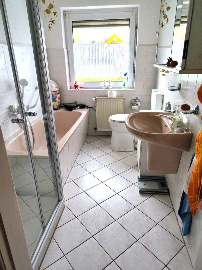 Dieses charmante, freistehende Einfamilienhaus aus der Aufsiedlungszeit bietet auf ca. 120 m² Wohnfläche eine behagliche Wohnatmosphäre mit Ausbaureserven. Das Haus umfasst zwei Stockwerke und verfügt über eine gemütliche Küche, zwei große Wohnzimmer sowie drei Schlafzimmer. Das Vollbad ist mit einer Dusche, Badewanne und einem Fenster ausgestattet.