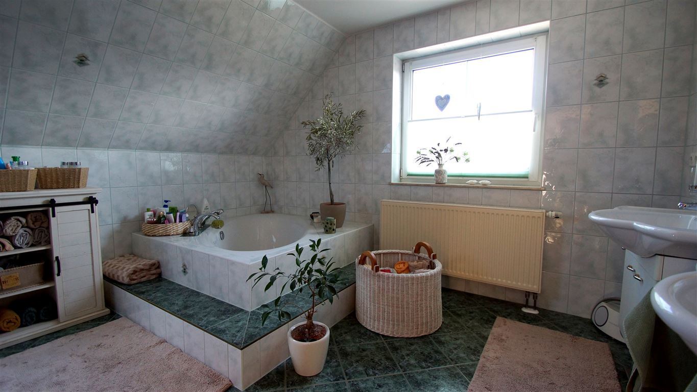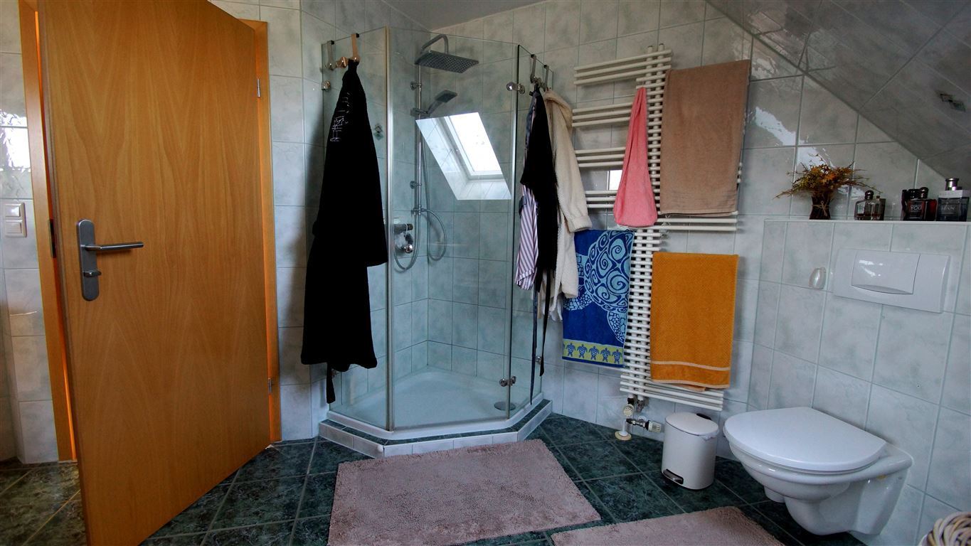 Das Obergeschoss beherbergt drei geräumige Schlafzimmer, die sich sowohl als Rückzugsorte wie auch als inspirierende Arbeitsräume eignen. An zwei Schlafzimmern schließt der überachte und traumhafte Balkon an, der einen überragendes Blick über Felder bis Güstrow, Richtung Süden gewährt.