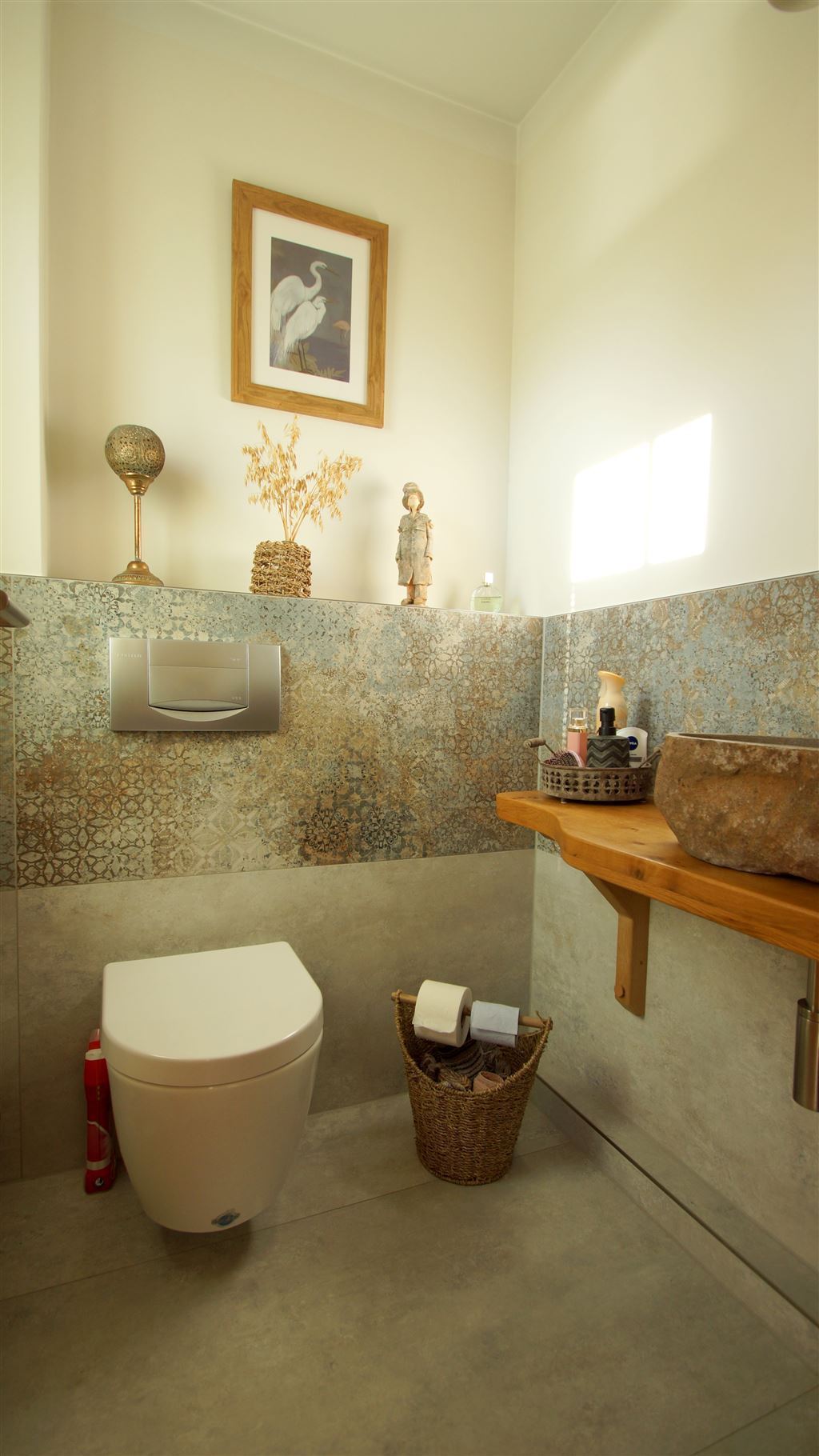 Im Erdgeschoss empfängt Sie ein großer Flur mit versteckter Garderobe, ein stilvolles Gästezimmer sowie eine offene, lichtdurchflutete Küche mit angrenzendem großzügigen Essbereich – der kommunikative Mittelpunkt des Hauses. Von dort gelangen Sie direkt in das weitläufige Wohnzimmer, das mit einem eleganten Kamin zum Herzstück für gesellige Abende oder entspannte Stunden wird. Jedes Geschoss des Hauses ist mit einem eigenen Badezimmer ausgestattet – ein seltenes und überaus komfortables Merkmal.