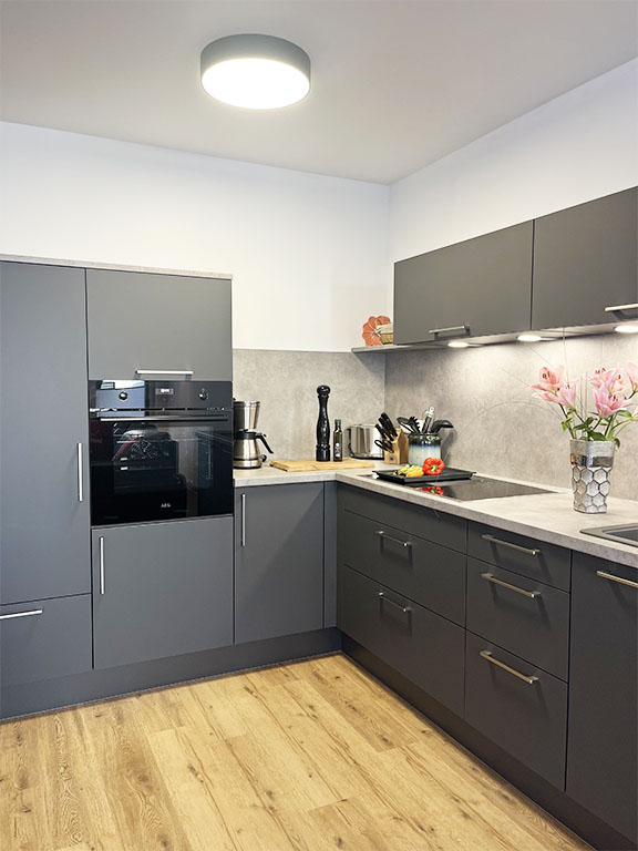 Die hellen, großzügig geschnittenen und möblierten Wohnungen überzeugen mit einem hohen Wohnkomfort und einer zeitgemäßen und hochwertigen Ausstattung. Große Fensterflächen sorgen für lichtdurchflutete Räume und ein angenehmes Wohnambiente.